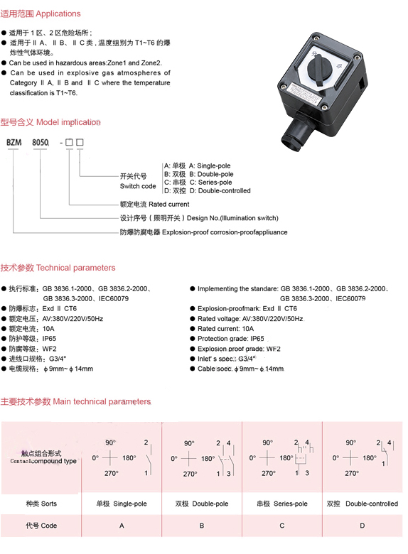 BZM8050防爆防腐照明開關(IIC)